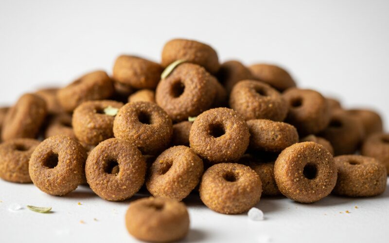 | 🍩 超小粒サイズ | 中心に穴の開いたドーナツ型は、顎の小さい小型犬でも噛み砕きやすく、万が一の丸呑みでも安心な形状です。 |